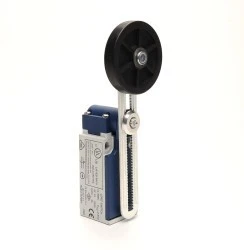 Łącznik w obudowie z tworzywa, 1NC+1NO. Rodzaj napędu – długa, regulowana dźwignia z rolką z gumy, dwukierunkowa.