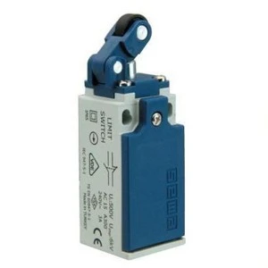 Łącznik w obudowie z tworzywa, 1NC+1NO. Rodzaj napędu – popychacz z dźwignią poziomą z rolką z tworzywa, działanie jednokierunkowe.