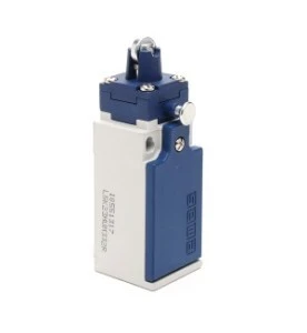 Łącznik w obudowie z tworzywa, 1NC+1NO. Rodzaj napędu – popychacz z rolką metalową, z resetem.