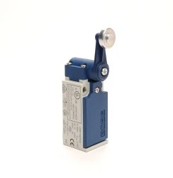 Łącznik w obudowie z tworzywa, 1NC+1NO. Rodzaj napędu – dźwignia obrotowa z rolką metalową, dwukierunkowa.