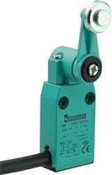 Łącznik krańcowy z przewodem, w obudowie z aluminium, wyposażony w dźwignię z metalową rolką, 1NC+1NO.