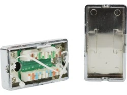 Montaż przewodów bezpośrednio w instalacji bez straty klasy transmisji. Wykorzystywany w sieciach Ethernet, znakomicie sprawdza się jako element do przedłużenia przewodu lub jako zestaw naprawczy. Konstrukcja łącznika (złącza typu LSA/KRONE) umożliwia wykonanie szybkich i pewnych połączeń przy użyciu typowego wciskacza LSA. Opisy przy stykach ułatwiają przyporządkowanie styków do odpowiednich żył łączonej skrętki, opaski zaciskowe umożliwiają unieruchomienie łączonych przewodów, otwory konstrukcyjne służą do ew. umocowania łącznika do podłoża lub ściany.