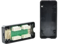 Montaż przewodów bezpośrednio w instalacji bez straty klasy transmisji. Wykorzystywany w sieciach Ethernet, znakomicie sprawdza się jako element do przedłużenia przewodu lub jako zestaw naprawczy. Konstrukcja łącznika (złącza typu LSA/KRONE) umożliwia wykonanie szybkich i pewnych połączeń przy użyciu typowego wciskacza LSA. Opisy przy stykach ułatwiają przyporządkowanie styków do odpowiednich żył łączonej skrętki, opaski zaciskowe umożliwiają unieruchomienie łączonych przewodów, otwory konstrukcyjne służą do ew. umocowania łącznika do podłoża lub ściany.