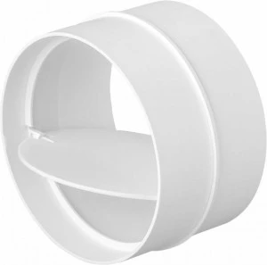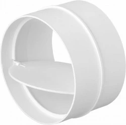 Łącznik do kanałów okrągłych o średnycy 150 mm z zaworem zwrotnym, który zapobiega wstecznemu ruchowi powietrza w kanale wentylacyjnym, a także blokuje dostęp kurzowi i robactwu.