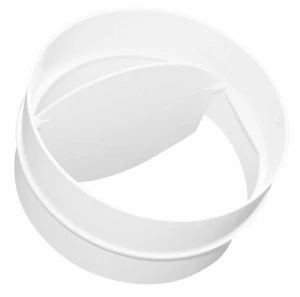 Łącznik z tworzywa do rur o średnicy 125 mm , z zaworem zwrotnym zapobiegającym ciągowi wstecznemu. System wentylacyjny fi 125