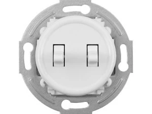 Łącznik wyposażony w dwa klawisze, umożliwiający łączenie dwóch niezależnych obwodów oświetleniowych ze wspólnego zasilania. Używany najczęściej do załączania oświetlenia podzielonego na dwie strefy. Przeznaczony jest do montażu w puszcze podtynkowej, o średnicy 60 mm. Dwustopniowy kołyskowy mechanizm przełączania. Części zewnętrzne wykonane z tworzywa sztucznego w białym kolorze o lśniącej powierzchni. Klawisze bez podświetlenia i oznaczeń na powierzchni. Rodzaj zacisku śruby. Kompatybilny z ramkami z serii retro.