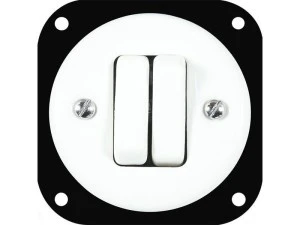 Łącznik podwójny schodowy umożliwia kontrolę dwóch obwodów oświetleniowych z dwóch różnych miejsc, co sprawdza się na klatkach schodowych, korytarzach czy w pomieszczeniach z dwoma wejściami. Montowany w puszkach podtynkowych o średnicy 60 mm.