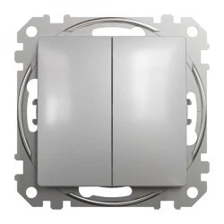 Łącznik podwójny schodowy, srebrne aluminium, to osprzęt serii Sedna Design & Elements marki Schneider Electric. Łącznik podwójny schodowy ma malowane wykończenie powierzchni w kolorze srebrnego aluminium i posiada następujące wymiary: szerokość 73 mm, wysokość 73 mm, głębokość 37 mm, głębokość wystawania 24 mm. Długość izolacji zdejmowanej z kabla to 13 mm. Łącznik charakteryzuje się stopniem ochrony IP20 i zakresem mocy wynoszącym 2300 W. Do produkcji łącznika wykorzystano tworzywo termoplastyczne o zwiększonej odporności na promieniowanie UV. Produkt jest montowany podtynkowo i posiada zaciski śrubowe. Uwaga: produkty Sedna Design & Elements nie są kompatybilne z serią Sedna!