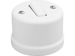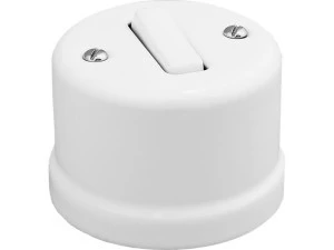 Łącznik wyposażony w jeden klawisz, umożliwiający włączenie i wyłączanie jednego obwodu oświetleniowego. Przeznaczony jest do montażu w puszcze podtynkowej, o średnicy 60 mm. Dwustopniowy kołyskowy mechanizm przełączania. Części zewnętrzne wykonane z ceramiki w białym kolorze o lśniącej powierzchni. Klawisz bez podświetlenia i oznaczeń na powierzchni. Zaciski śrubowe. Kompatybilny z ramkami drewnianymi oraz ceramicznymi z serii Ceramic.