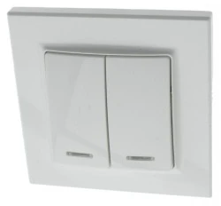 Łącznik podwójny służy do załączania dwóch obwodów z jednego zasilania. Łącznik posiada podświetlenie przycisków ułatwiające zlokalizowanie go w ciemnych pomieszczeniach.
