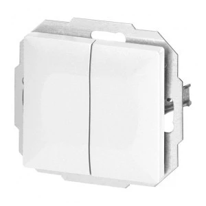 Łącznik schodowy podwójny przeznaczony do montażu podtynkowego. Podwójny łącznik schodowy znajdzie zastosowanie tam gdzie zachodzi potrzeba sterowania dwoma obwodami niezależnie. Służy do załączania i odłączania obwodu, z którym połączone jest oświetlenie schodowe. Łączniki tego typu montuje się zawsze parami. Funkcja tego typu łącznika polega na aktywowaniu np. oświetlenia z różnych miejsc lub kondygnacji. Podobnie zrealizować można oświetlenie w sypialni, które załączamy po wejściu do pokoju, a chcemy wyłączyć tuż przy łóżku, bez potrzeby wracania się do wyłącznika głównego. Należy stosować wewnątrz pomieszczeń (IP20).