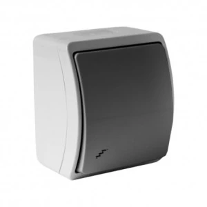 Łącznik natynkowy pojedynczy biały IP44 napięcie znamionowe 250V~ prąd znamionowy 10A montaż natynkowy sposób mocowania zaciski śrubowe kolor gniazda/klapki biały/biały wykończenie powierzchni matowa stopień ochrony IP44 materiał ABS wymiary 74x62x46mm normy i aprobaty CE producent Doktorvolt numer artykułu 151-08-DRV EAN 5906365208233