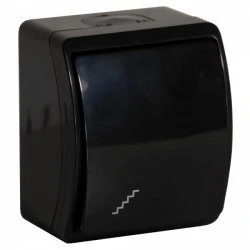 Łącznik schodowy przeznaczony do montażu natynkowego. Produkt służy do załączania i odłączania obwodu, z którym połączony jest oświetlenie schodowe. Łączniki tego typu montuje się zawsze parami. Funkcja tego typu łącznika polega na aktywowaniu np. oświetlenia z różnych miejsc lub kondygnacji. Podobnie zrealizować można oświetlenie w sypialni, które załączamy po wejściu do pokoju, a chcemy wyłączyć tuż przy łóżku, bez potrzeby wracania się do wyłącznika głównego. Łącznik wykonany jest z wysokogatunkowego tworzywa sztucznego i występuje w 3 kolorach: białym, czarnym lub szaro-grafitowym. Posiada klasę szczelności IP44, więc może być stosowany zarówno wewnątrz jak i na zewnątrz.