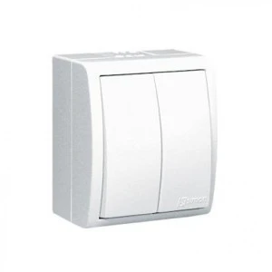 Łącznik schodowy podwójny bryzgoszczelny IP54 z podświetleniem, bez piktogramu 10AX, 250V~, zaciski śrubowe biały AQW6/2L/x/11