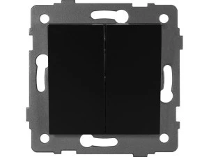 Łącznik schodowy podwójny serii Modern-Q w kolorze czarnym, przeznaczony do sterowania dwoma obwodami oświetleniowymi z dwóch różnych miejsc. Konstrukcja umożliwia niezależne sterowanie każdym obwodem, zachowując spójność wizualną z pozostałymi elementami serii Modern-Q.