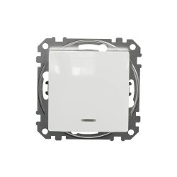 Łącznik schodowy z podświetleniem 16AX, biały, to osprzęt serii Sedna Design & Elements marki Schneider Electric. Łącznik schodowy ma lśniące wykończenie powierzchni w kolorze białym i posiada następujące wymiary: szerokość 73 mm, wysokość 73 mm, głębokość 37 mm, głębok ość wystawania 24 mm. Długość izolacji zdejmowanej z kabla to 13 mm. Łącznik charakteryzuje się stopniem ochrony IP20 i zakresem mocy wynoszącym 3680 W. Do produkcji łącznika wykorzystano tworzywo termoplastyczne o zwiększonej odporności na promieniowanie UV. Produkt je st montowany podtynkowo i posiada zaciski bezśrubowe. Urządzenie może byc wykorzystywane jako tradycyjny włącznik światła lub służyć do załączania innych urządzeń o maksymalnym poborze prądu do 16 AX w instalacjach, w których zachodzi potrzeba sterowania tym samym źródł em swiatła z 2 różnych punktów. Uwaga: produkty Sedna Design & Elements nie są kompatybilne z serią Sedna!