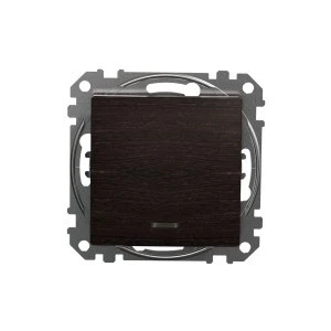 Łącznik schodowy z podświetleniem, wenge, efekt drewna, to osprzęt serii Sedna Design & Elements marki Schneider Electric. Łącznik schodowy ma satynowe wykończenie powierzchni w kolorze wenge i posiada następujące wymiary: szerokość 73 mm, wysokość 73 mm, głębokość 37 mm, głębokość wystawania 24 mm. Długość izolacji zdejmowanej z kabla to 13 mm. Łącznik charakteryzuje się stopniem ochrony IP20 i zakresem mocy wynoszącym 2300 W. Do produkcji łącznika wykorzystano tworzywo termoplastyczne o zwiększonej odporności na promieniowanie UV, które doskonale imituje naturalne materiały. Produkt jest montowany podtynkowo i posiada zaciski śrubowe. Urządzenie może byc wykorzystywane jako tradycyjny włącznik światła lub służyć do załączania innych urządzeń o maksymalnym poborze prądu do 10 AX w instalacjach, w których zachodzi potrzeba sterowania tym samym źródłem swiatła z 2 różnych punktów. Uwaga: produkty Sedna Design & Elements nie są kompatybilne z serią Sedna!