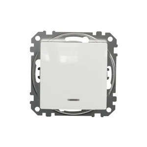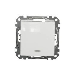 Łącznik schodowy z sygnalizacją załączenia, biały, to osprzęt serii Sedna Design & Elements marki Schneider Electric. Łącznik schodowy ma lśniące wykończenie powierzchni w kolorze białym i posiada następujące wymiary: szerokość 73 mm, wysokość 73 mm, głębokość 37 mm, gł ębokość wystawania 24 mm. Długość izolacji zdejmowanej z kabla to 13 mm. Łącznik charakteryzuje się stopniem ochrony IP20 i zakresem mocy wynoszącym 2300 W. Do produkcji łącznika wykorzystano tworzywo termoplastyczne o zwiększonej odporności na promieniowanie UV. Produk t jest montowany podtynkowo i posiada zaciski śrubowe. Urządzenie może byc wykorzystywane jako tradycyjny włącznik światła lub służyć do załączania innych urządzeń o maksymalnym poborze prądu do 10 AX w instalacjach, w których zachodzi potrzeba sterowania tym samym źród łem swiatła z 2 różnych punktów. Uwaga: produkty Sedna Design & Elements nie są kompatybilne z serią Sedna!