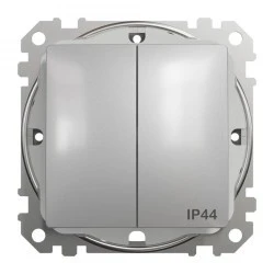 Łącznik świecznikowy IP44, srebrne aluminium, to osprzęt serii Sedna Design & Elements marki Schneider Electric. Łącznik świecznikowy IP44 ma malowane wykończenie powierzchni w kolorze srebrnego aluminium i posiada następujące wymiary: szerokość 73 mm, wysokość 73 mm, g łębokość 38 mm, głębokość wystawania 24 mm. Długość izolacji zdejmowanej z kabla to 13 mm. Łącznik charakteryzuje się stopniem ochrony IP44 i zakresem mocy wynoszącym 2300 W. Do produkcji łącznika wykorzystano tworzywo termoplastyczne o zwiększonej odporności na promien iowanie UV. Produkt jest montowany podtynkowo i posiada zaciski śrubowe. Urządzenie może być wykorzystywane jako tradycyjny włącznik 2 niezależnych źródeł światła lub służyć do załączania innych urządzeń o maksymalnym poborze prądu do 10 AX. Łącznik świecznikowy posiada 3 zaciski: 2 zaciski, do których podłaczane są odbiorniki, oraz jeden zacisk, do którego podłączone jest zasilanie (L).Uwaga: produkty Sedna Design & Elements nie są kompatybilne z serią Sedna!