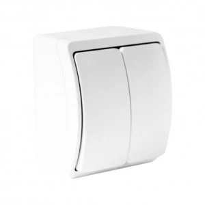 Wyłącznik włącznik świecznikowy podwójny biały 10A 250V IP44 zastosowanie wyposażony w 2 przyciski, przeznaczony do żyrandoli (podzielonych na 2 strefy) napięcie znamionowe 250V~ prąd znamionowy 10A montaż natynkowy sposób mocowania zaciski śrubowe kolor gniazda/klapki biały/biały wykończenie powierzchni matowa stopień ochrony IP44 materiał ABS wymiary 74x62x46mm normy i aprobaty CE producent Doktorvolt numer artykułu 152-01-DRV EAN 5906365205720