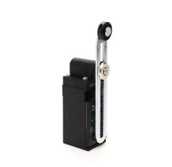 Łącznik L3 w obudowie z tworzywa, 1NC+1NO, działanie migowe. Rodzaj napędu – długa, regulowana dźwignia z rolką z tworzywa. 1 wejście na dławik PG 13,5.
