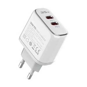 Zasilaj smartfon i tablet, laptop lub PowerBank równocześnie! Dzięki dwóm portom (Type-C + USB) oraz mocy 35W z technologią Quick Charge 3.0 i Power Delivery, oszczędzasz czas i energię.