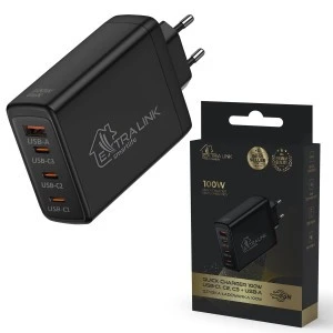 Ładowarka Extralink to prawdziwy multitasking w świecie ładowania. Posiada trzy wydajne wejścia USB-C oraz jedno wejście USB-A, dzięki czemu nie musisz się ograniczać do ładowania tylko jednego urządzenia. Wygodne i praktyczne rozwiązanie dla wielozadaniowych użytkowników, którzy nie chcą tracić czasu na ładowanie pojedynczych urządzeń.