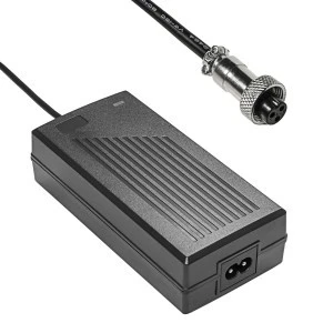 Akyga® AK-EV-02 to wysokiej jakości ładowarka do rowerów elektrycznych. Jej maksymalna moc ładowania wynosi 60 W, przy wyjściowych parametrach 29,4 V/2 A. Zaleca się używanie jej do ładowania pojazdów wyposażonych w pakiet ogniw 24 V. Urządzenie posiada popularne gniazdo zasilania IEC C8 oraz żeńskie złącze wyjściowe w standardzie Mini XLR, często stosowane w elektrycznych urządzeniach mobilnych typu rowery czy skutery. Największym atutem produktu jest jego wysoka sprawność oraz wskaźnik niezawodności. Wyposażony jest on również w kontrolkę LED sygnalizującą o trwaniu lub ukończeniu procesu ładowania. Długość przewodu ładowarki wynosi 1 metr, co zapewnia jej wygodne użytkowanie. Urządzenie jest w kolorze czarnym, pakowane w proekologiczne Ecobox.