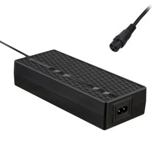 Akyga® AK-EV-05 to produkt dedykowany do ładowania rowerów elektrycznych wyposażonych w pakiet ogniw 48 V. Żeńskie złącze wyjściowe w standardzie Mini XLR na przewodzie o długości 1 metra pozwala na wygodne ładowanie e-rowerów. Urządzenie przystosowano do zasilania przewodem z wtykiem IEC C8, często stosowanym w dziedzinie zasilania. Znaczącą zaletą ładowarki jest jej wysoka sprawność, która przekracza 80%. Wyposażona jest również w kontrolkę LED sygnalizującą o trwaniu lub ukończeniu procesu ładowania. Produkt dostępny jest w kolorze czarnym, pakowany w przyjazny środowisku Ecobox.