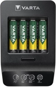 - Ładowarka dla 1-4 baterii AA lub baterii AAA - w zestawie 4x baterie AA firmy VARTA o pojemności 2100 mAh (56706)