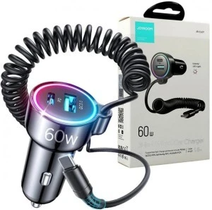 Ładowarka samochodowa 3w1 Joyroom JR-CL07 60W 4.0A PD 3.0 QC 3.0 1x USB-A 1x USB-C z kablem 1.6M