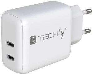 Dzięki zastosowaniu podwójnego portu USB-C zasilacz Power Delivery Techly umożliwia podłączenie do ładowania jednocześnie dwóch urządzeń. Oferowana moc 35W jest dzielona w stosunku 20W+15W w przypadku użycia obydwu portów USB-C na raz, lub w pełni dostępna do wykorzystania dla pojedynczego urządzenia USB-C.