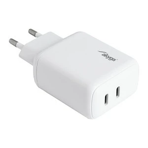 Akyga® AK-CH-19 to uniwersalna ładowarka sieciowa. Posiada dwa porty USB typu C, dzięki czemu można nią naładować aż dwa urządzenia jednocześnie. Oba porty wyposażono w funkcję szybkiego ładowania Quick Charge 3.0 oraz układ Power Delivery 3.0. To sprawia, że można nią naładować nie tylko smartfony, ale także tablety, czy słuchawki. Jest to bardzo wygodne rozwiązanie dla osób, które często korzystają z różnych urządzeń elektronicznych. Co więcej, ładowarka nie posiada wbudowanych przewodów. Dzięki temu sami możemy dobrać kable o dowolnej długości i ze złączem jakie będzie nam najbardziej pasowało.