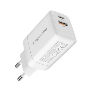 Ładowarka sieciowa GaN Kruger&Matz KM0856 o mocy 45 W z dwoma portami USB typu A i USB typu C obsługuje szybkie ładowanie Power Delivery, Quick Charge oraz PPS, zapewniając optymalne i efektywne zasilanie smartfonów, tabletów, nawigacji GPS i innych urządzeń mobilnych.