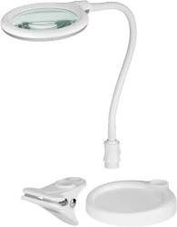 - Lampę powiększającą 2 w 1 można zamontować jako lampę stołową z podstawką lub jako lampę powiększającą z zaciskiem.
