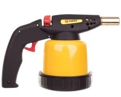 Lampa lutownicza gazowa na naboje 190 g, zapłon piezoelektryczny, do pracy w każdej pozycji, temperatura pracy 1350°C, moc 1.9 kW, średnie zużycie gazu 180 g/h, obudowa metalowa.