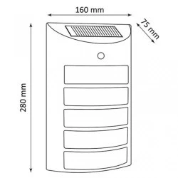 Kinkiet solarny został wyposażony w czujnik ruchu PIR. Kąt wykrywania ruchu to 120º, a zasięg wykrywania ruchu od 3m do 5m.