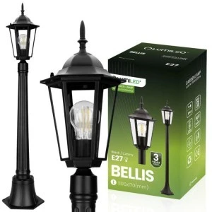 Lampa Ogrodowa, Słupek Zewnętrzny serii BELLIS marki LUMILED o wysokości 1m w kształcie latarni w kolorze czarnym. Lampa wykonana z wysokiej jakości aluminium oraz szkła. Zastosowanie stopu aluminium do produkcji lampy sprawia, że jest ona lekka, wytrzymała oraz odporna na korozję.Lampa BELLIS została wykonana z dużą dbałością o szczegóły z połączenia wysokiej jakości aluminium i szkła. Dzięki temu nie tylko wygląda bardzo stylowo, ale także zachowuje pełną estetykę przez wiele lat. Lampa została wyposażona w popularny trzonek (gwint) E27, dzięki czemu mamy możliwość dobrania żarówek LED i tradycyjnych odpowiedniej mocy i barwy światła wedle naszych potrzeb, jednakże maksymalna moc źródła światła nie może przekraczać 12W LED.