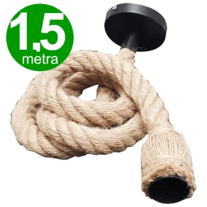 Lampa zawieszana ma grubym sznurze o długości 1,5 metra. Oryginalny design inspirowany naturą. W metalowej kopule, koloru czarnego, montowanej na suficie za pomocą dostarczonych kołków i wkrętów, znajduje się kostka instalacyjna na szybkozłącze 3-torowa. Lampa zakończona jest czarną oprawą E27 (zwykły gwint) z tworzywa sztucznego. Sznur można dowolnie zaplatać, tworząc fantazyjne kompozycje.