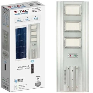 Lampa solarna LED V-TAC VT-30301ST to zaawansowane oświetlenie zewnętrzne o mocy 40W, wyposażone w panel fotowoltaiczny, czujnik ruchu oraz pilot zdalnego sterowania.