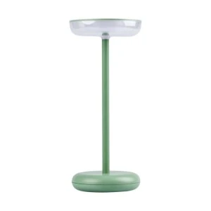 Lampa stołowa LED, Średnica [mm]: 110, Wysokość [mm]: 260, Akumulator (parametry): Li-Ion 1800mA, Akumulator (typ): 18650, Barwa światła: ciepłobiała, Klasa ochronności przed porażeniem elektrycznym: III, Kolor: zielony, Materiał klosza: tworzywo sztuczne, Materiał obudowy: tworzywo sztuczne,metal, Miejsce montażu: na podłożu, Minimalna odległość od oświetlanego obiektu: 0,1m, Moc maksymalna [W]: max 1,7, Możliwość ściemniania wyłącznie za pomocą wewnętrznego układu elektronicznego: tak, Napięcie znamionowe [V]: 3,7 DC 18650 ACCU, Rodzaj diody: LED SMD, Skuteczność świetlna lampy [lm/W]: max 82, Stopień IP: 44, Strumień świetlny oprawy [lm]: max 140, Temperatura barwowa [K]: 3000, Włącznik: 1, Współczynnik oddawania barw Ra: 80.