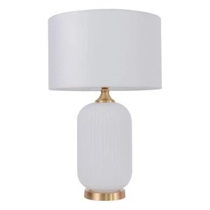 Lampa stołowa Tamiza w białym kolorze to elegancka i ponadczasowa propozycja oświetleniowa, która doskonale odnajdzie się w różnych aranżacjach wnętrz. Jej jasna kolorystyka wprowadza do pomieszczenia poczucie lekkości, harmonii i czystości, subtelnie rozjaśniając przestrzeń. Biały odcień lampy nadaje jej uniwersalnego charakteru, dzięki czemu świetnie komponuje się zarówno z minimalistycznymi, jak i bardziej klasycznymi wystrojami. To nie tylko praktyczne źródło światła, ale również stylowy element dekoracyjny, który podkreśli nowoczesny charakter wnętrza lub dopełni spokojną, stonowaną estetykę. Lampa Tamiza w bieli zachwyca prostotą i klasą, wnosząc do każdego pomieszczenia świeżość i elegancję.Wykonana jest z połączenia białej ceramiki, metalu w złotym kolorze i białego abażura wykonanego z tkaniny.