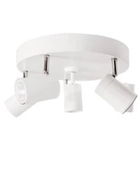 Lampa sufitowa By Rydens 4200730-5002 Correct to nowoczesny model składający się z pięciu punktów świetlnych. Reflektory pozwalają na indywidualne dopasowanie dzięki możliwości ustawienia kierunku świecenia. Lampa Correct pomoże uwypuklić obraz, dekorację i wszystkie elementy, które chcemy podkreślić. Biała lampa sufitowa Correct to doskonały sposób na oświetlenie nie tylko w domu. Żarówki należy zakupić oddzielnie.