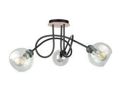 Lampa sufitowa Evie Black Wood to połączenie nowoczesnego designu z ciepłem naturalnego drewna, które nadaje wnętrzu wyjątkowego charakteru. Z czarną bazą, trzema szklanymi transparentnymi kloszami i drewnianym elementem, ta trzypunktowa lampa sufitowa jest idealnym połączeniem stylu i funkcjonalności.
