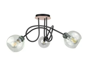 Szklane transparentne klosze lampy Evie Black Wood doskonale rozpraszają światło, tworząc przyjemną atmosferę w pomieszczeniu. Dzięki trzem oprawkom E27 o maksymalnej mocy 60W, ta lampa zapewnia odpowiednie oświetlenie, zachowując jednocześnie subtelność i elegancję.