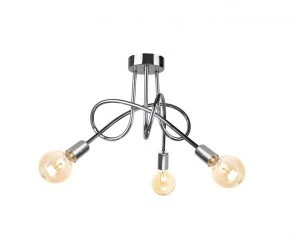 Lampa Rumba to wyraz nowoczesności i finezji. Trzypłomienny design, oparty na gołych żarówkach na oprawkę E27, nadaje pomieszczeniu dynamicznego i nowoczesnego charakteru. Chromowane rurki, przeplatane między sobą, tworzą efektowną strukturę, która połyskuje, odbijając światło w sposób wyjątkowy.