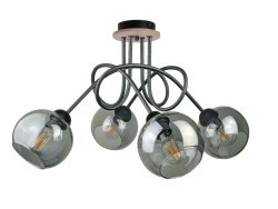 Lampa sufitowa Ring Black Wood to połączenie nowoczesnego designu z naturalnymi elementami, które dodają wnętrzu ciepła i elegancji. Czarna konstrukcja lampy harmonijnie współgra ze szklanymi dymionymi kloszami, które delikatnie rozpraszają światło, tworząc przyjemną atmosferę oświetleniową.