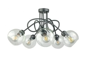 Lampa sufitowa Evie Black to połączenie elegancji, nowoczesnego designu i funkcjonalności, które wniosą wyjątkowy charakter do Twojego wnętrza. Z czarną bazą i pięcioma szklanymi transparentnymi kloszami, ta pięciopunktowa lampa sufitowa stanowi doskonały element dekoracyjny, który jednocześnie zapewnia doskonałe oświetlenie.