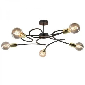 Lampa sufitowa Fiore czarna z złotymi elementami 5-płomieniowa na gołe żarówki to nie tylko doskonałe źródło światła, ale także wyjątkowy element dekoracyjny, który wnosi do pomieszczenia styl, elegancję i wyrazistą atmosferę. To oświetlenie, które zarówno oświetla, jak i nadaje wnętrzu charakteru, stanowiąc centralny punkt aranżacji przestrzeni.