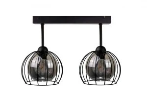 Centralnym punktem lampy są dwa misternie wykonane klosze w formie drucianej kuli, które nadają pomieszczeniu industrialnej elegancji. Wewnątrz każdego klosza znajduje się drugi dymiony szklany, kreując subtelne światło o wyjątkowym charakterze. Ta lampa nie tylko oświetla, ale także stanowi designerski element dekoracyjny.